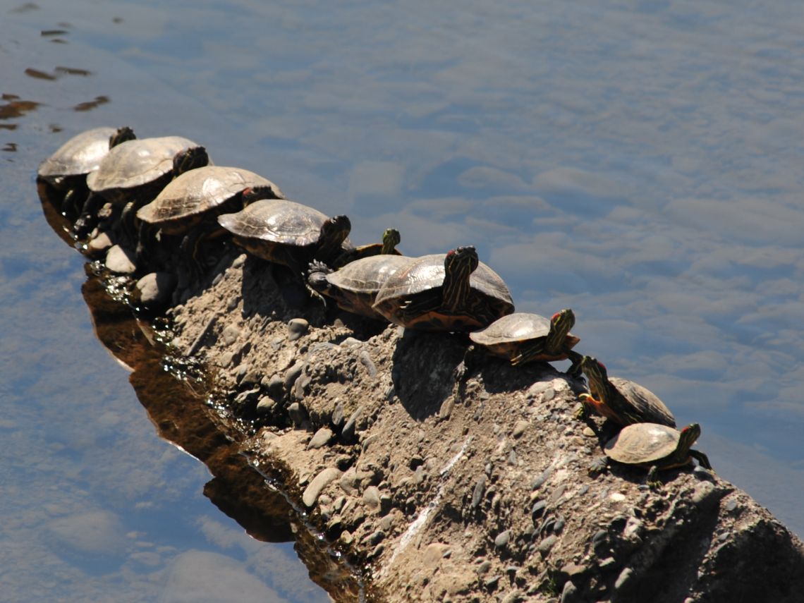 ミドリガメでしょうか?桜ヶ丘記念病院の前で甲羅を乾かしていました。