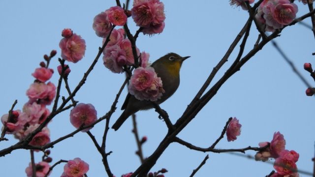 大栗川から多摩川にかけて早朝ジョギングをしました。 菜の花やオオイヌフグリ、ヒメオドリコソウなどの花が咲き始め、梅の花にはメジロが集まっています。