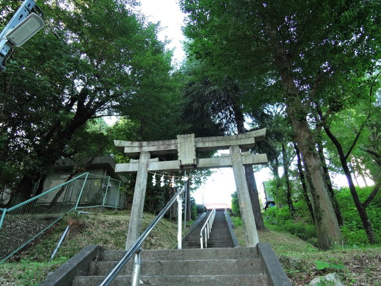 北側から石段を登る途中では丘の上にある神社かと思いましたが、登ってみるとその奥に普通に大きめの車道があり、神社の裏側が丸見えでした。ちょっと不思議な感じがしました。