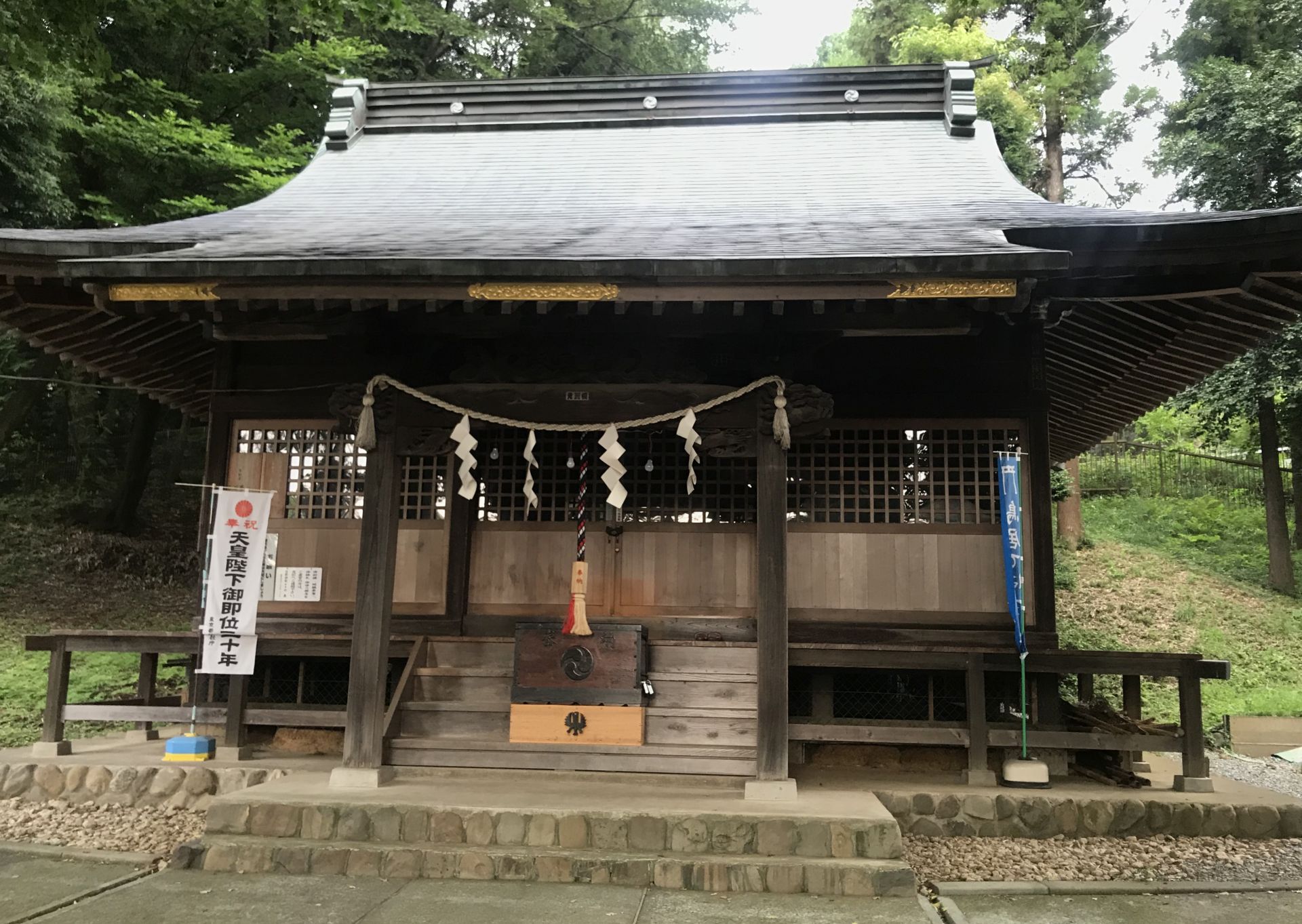 鳥居の前に灯籠が配置され、その先に大きな銀杏のご神木があります。