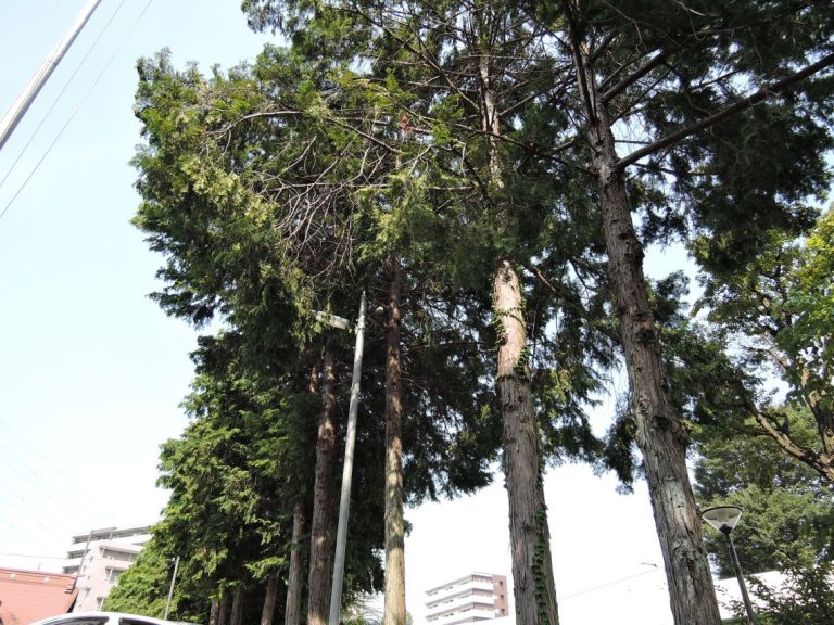契約車が出入りするたびに参道を横切り、鳥居と本殿の間を抜けて道路へ出ていく。<br />