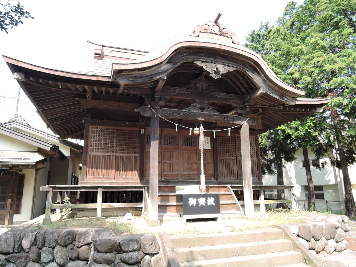 どこまでか境内かわからないが、鳥居と本殿の間に駐車場があり、本殿のすぐ横を車が通るちょっと不思議な場所